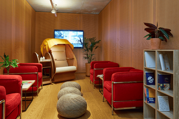 L’espace est notamment équipé d’un fauteuil d’allaitement, d’un réfrigérateur et d’une table pouvant accueillir leur tire-lait
