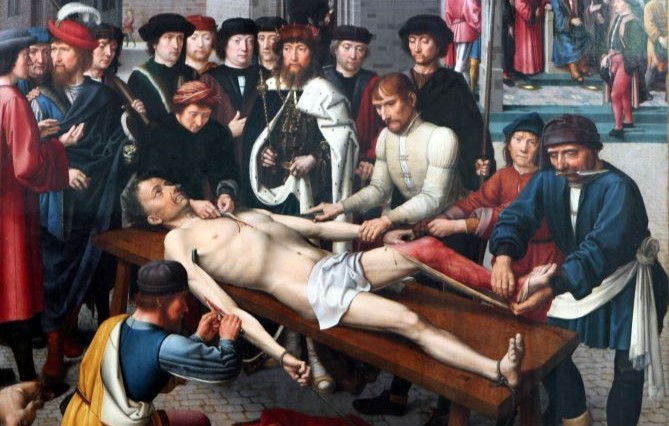 Notre chroniqueur, qui a précédemment évoqué dans nos colonnes le supplice de l’estrapade**, nous emmène cette semaine à Bruges (Belgique) afin d’étudier le tableau de Gérard David qui met en scène le jugement rendu par Cambyse contre un magistrat dévoyé. Il fait découper sa peau en lambeaux et oblige ensuite le fils du supplicié à exercer la même fonction judiciaire que son géniteur, assis sur… la peau de son père. Un exemple de sanction dissuasive comme on en voit rarement !