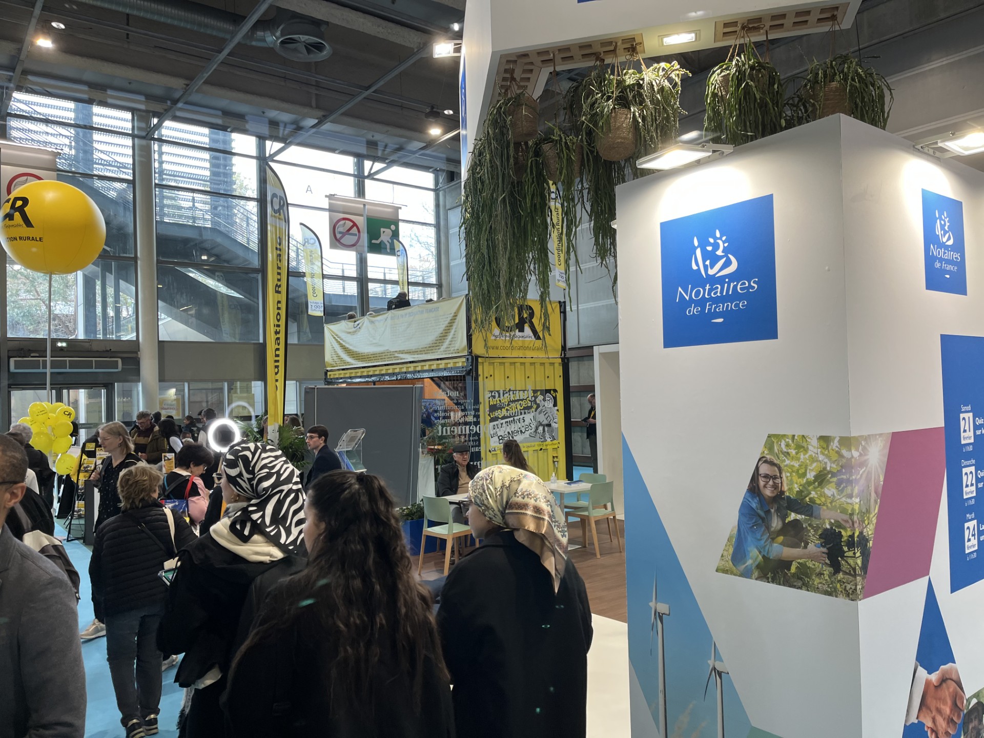 Loin de la cohue et de l’affluence des pavillons régionaux, installés entre les étendards des organisations syndicales, Notaires de France et Commissaires de justice détonnent. Le sens de leur présence au Salon de l’Agriculture ? Communiquer pour mieux se faire connaître. « Le grand public ne nous identifie pas encore parfaitement, le but ici est d’expliquer aux agriculteurs tout ce que nous pouvons faire à leurs côtés », avance Mathieu Pierson, commissaire de justice, pour justifier la présence de sa Chambre nationale.