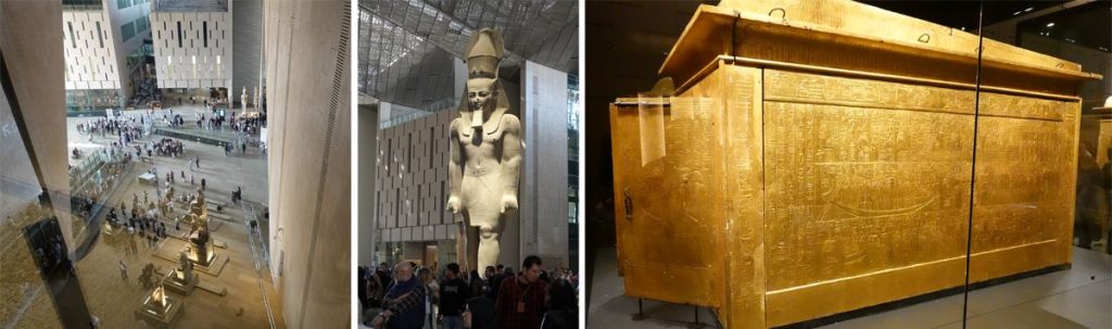 Récemment inauguré lors d’une cérémonie fastueuse par le président Al Sissi, ce gigantesque temple de l’histoire, recelant 160 000 objets, a été imaginé à la gloire du pays des pharaons, par l’ancien président Moubarak. Une aile entière de ce musée est exclusivement dédiée à l’enfant-roi Toutânkhamon.