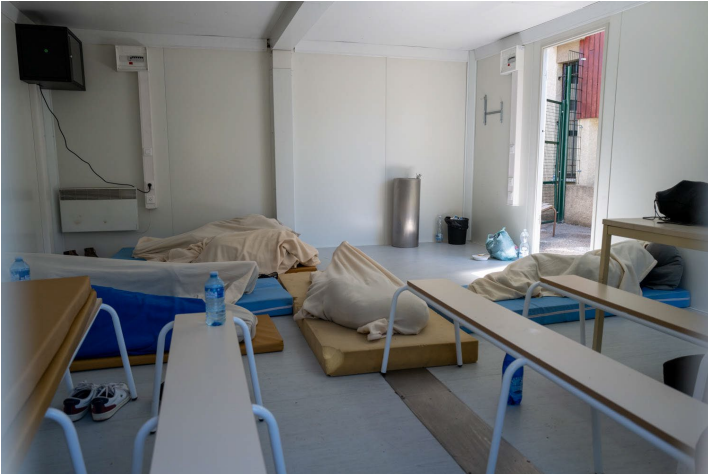 Les préfabriqués ou « structures modulaires » seraient par ailleurs, selon le CGLPL, « peu adaptés à l’accueil prolongé de personnes, en raison notamment de la rudesse des hivers alpins, à 1 800 mètres d’altitude » – malgré la présence de radiateurs. Les recommandations du contrôleur font également état de l’absence de salle d’attente et de la petitesse des préfabriqués, « d’une surface de 20m2 » chacun, « manifestement sous dimensionnés » au regard du nombre de personnes qui y passent chaque jour et de l’absence de jauge. Il arrive « que les femmes majeures passent la nuit dans le hall d’entrée du SIPAF, sur les bancs face au poste ou dans les geôles laissées ouvertes », note encore le CGLPL.