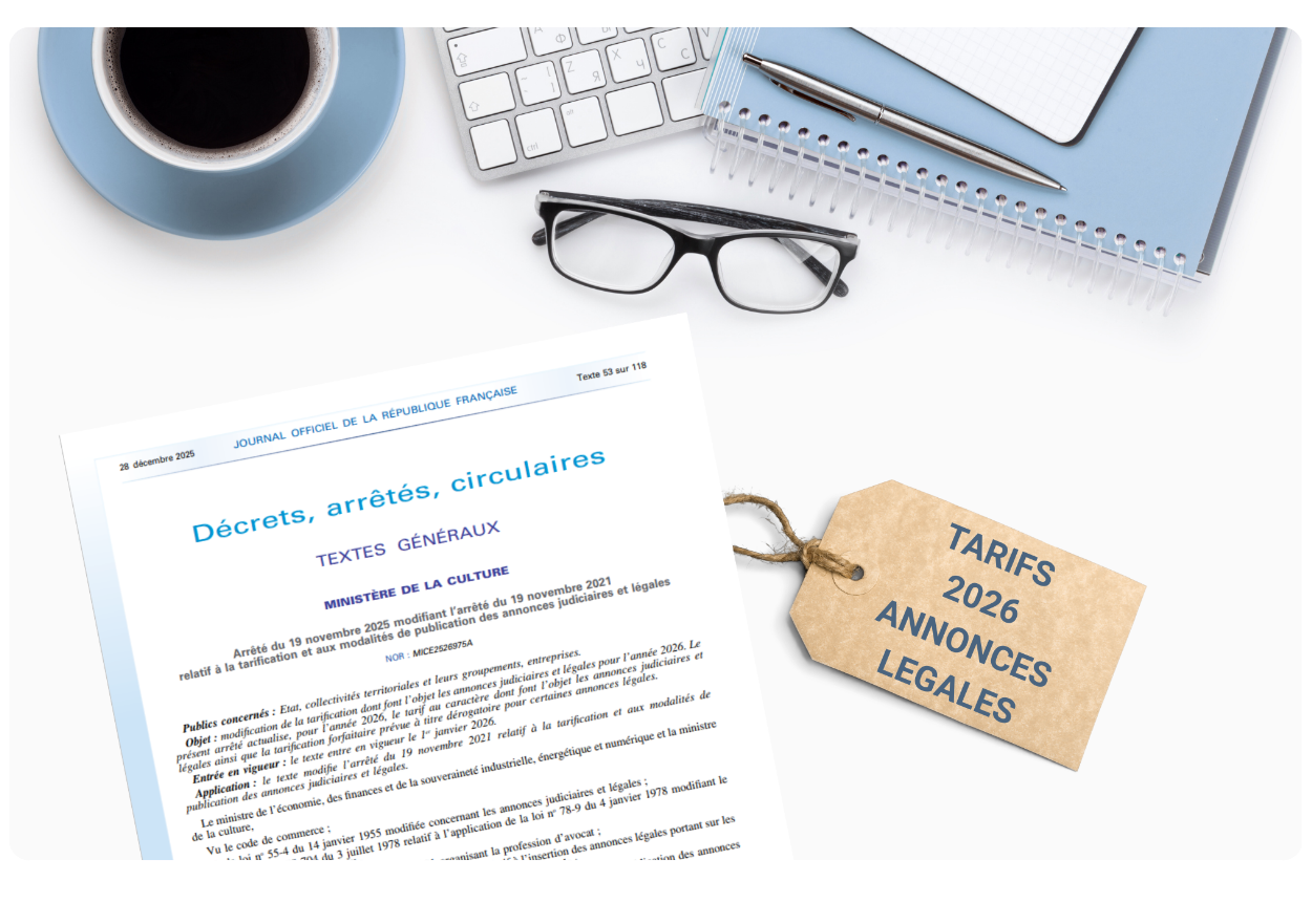 Cet article vous explique comment sont calculés les tarifs des annonces légales, quels actes bénéficient d’un forfait, et quels sont les barèmes 2026, tels que fixés par l’arrêté ministériel applicable au 1er janvier 2026.