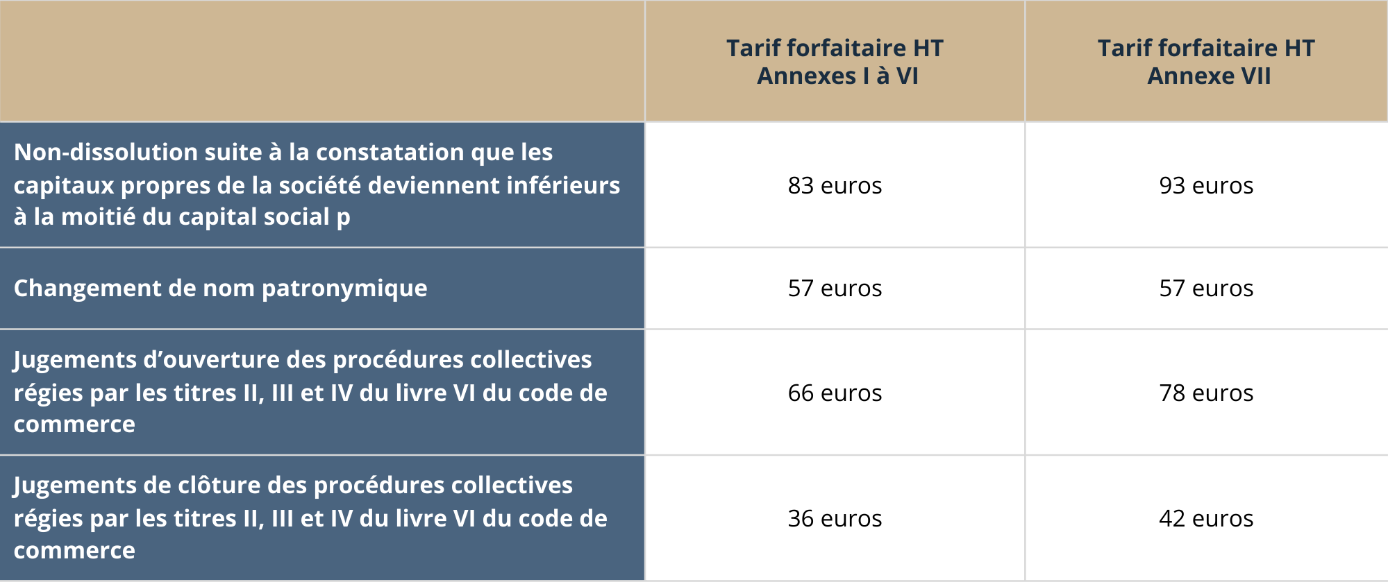 1. Pour les constitutions de sociétés
